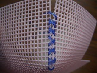 - Cut a piece of plastic canvas from the left over canvas in step 1, that is 6 squares by 62 squares.