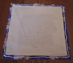 3) Place your second piece of fabric on top, right side up and press the edges down into the glue firmly. If you are making the coasters and giving them as a gift, I suggest making an even number such as 4, 6 or 8; stacking them and tying a piece of yarn or ribbon around them for a more finished look.